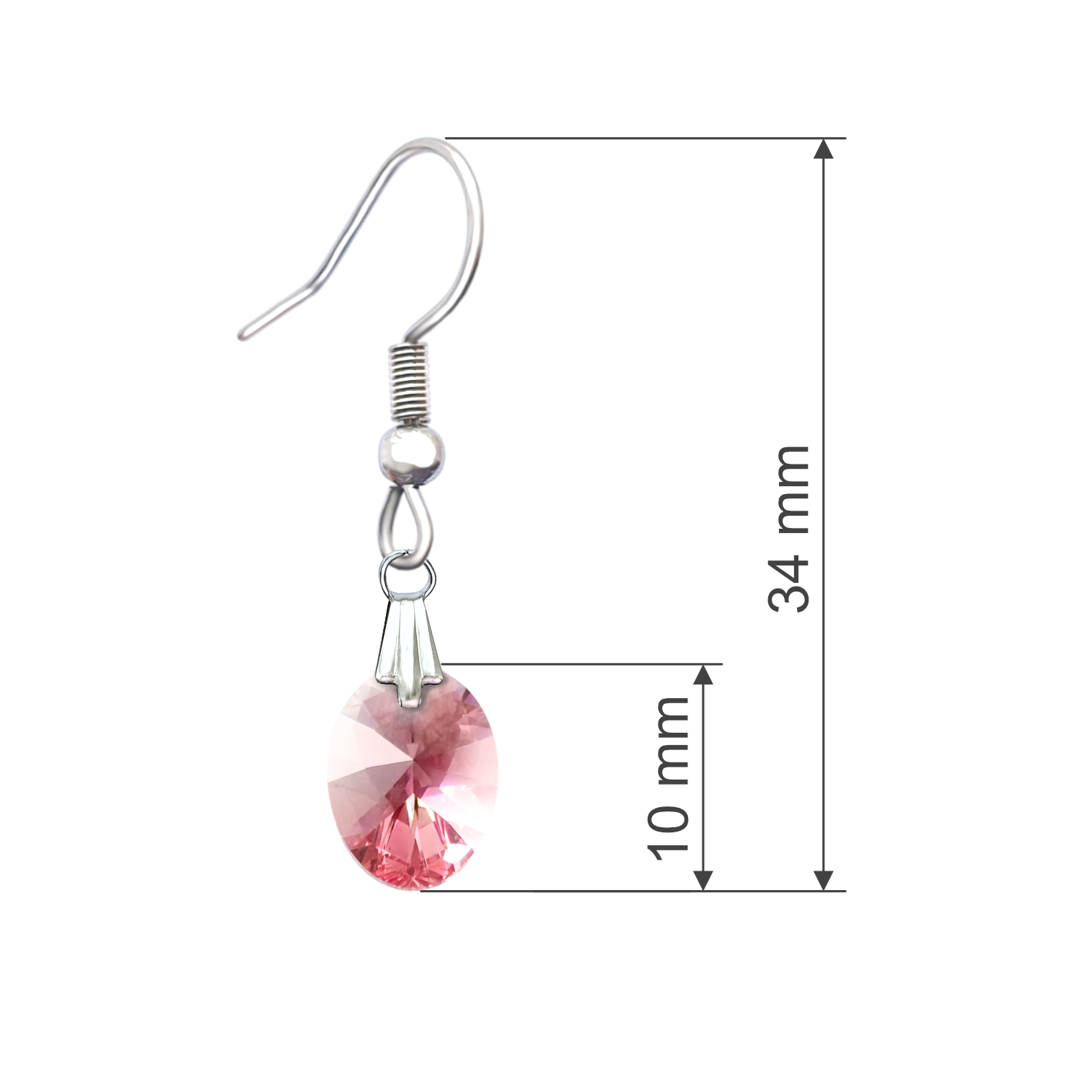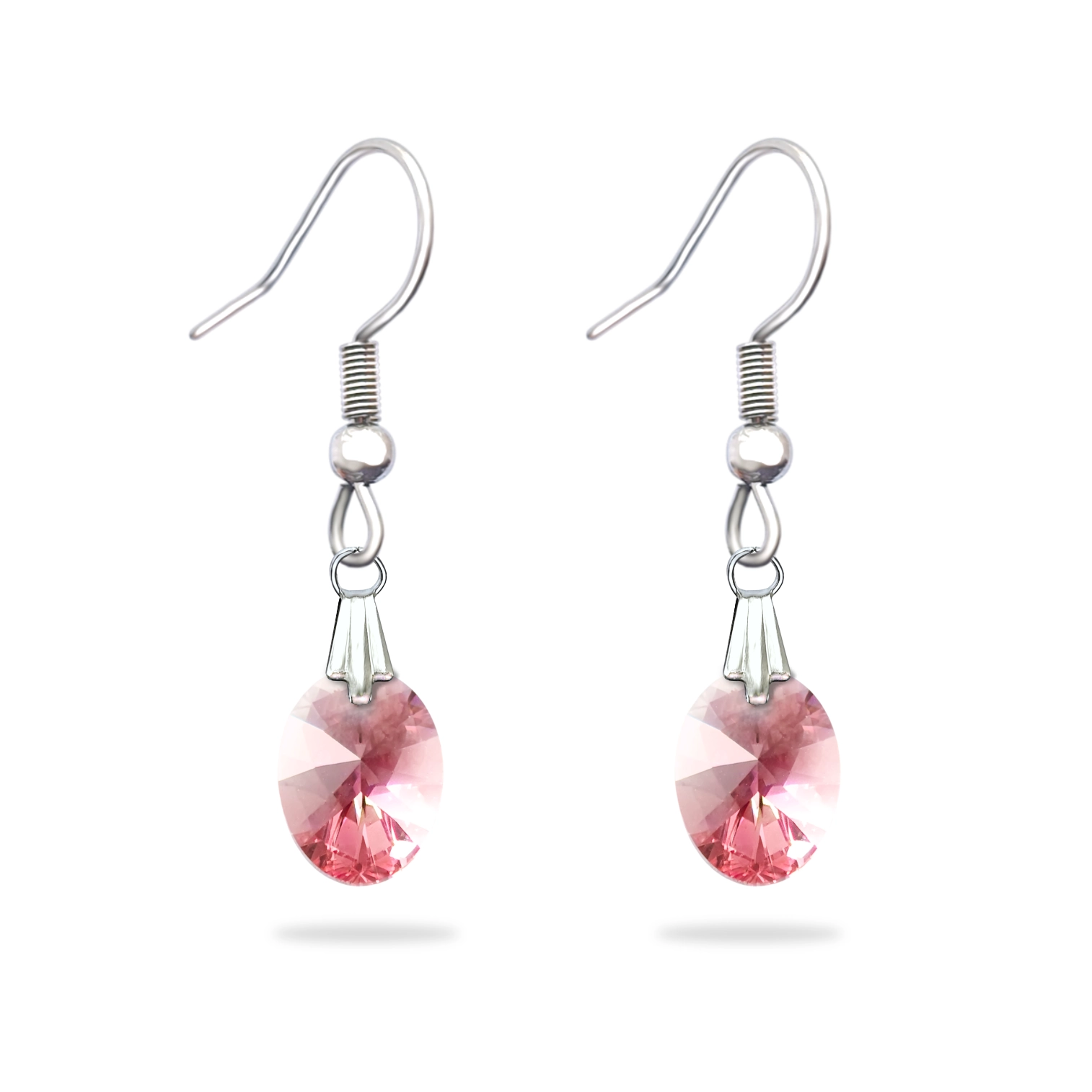 Cercei dama, pandantiv oval cristal Swarovski, Light Rose